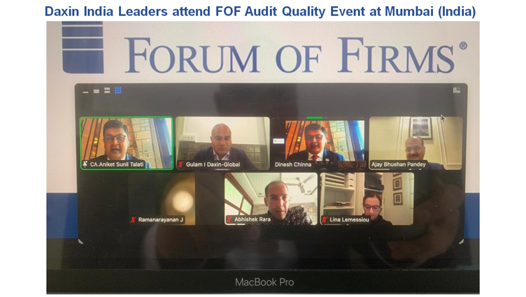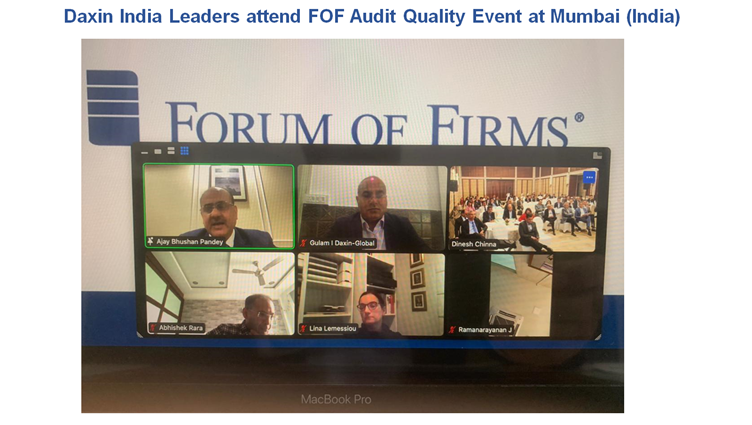 Daxin India, represented by CA Gulam Mohammad, managing partner of Indian member firm, participated in the Audit Quality Event organized by the Forum of Firms (FOF) in Mumbai, India on November 30, 2023. The FOF is an independent association of international networks of firms that perform transnational audits.
